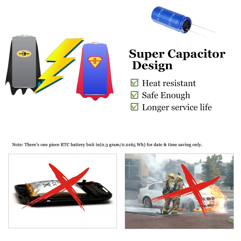 - Super Condensateur : Améliore la fiabilité en conditions extrêmes et prolonge la durée de vie de l'appareil.