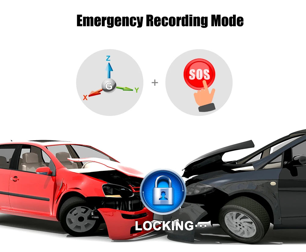 La dash cam propose trois options de mode parking : détection d'événements, time-lapse, et enregistrement à faible débit. Le G-Sensor détecte les collisions et verrouille automatiquement les vidéos importantes pour éviter qu’elles ne soient écrasées. -