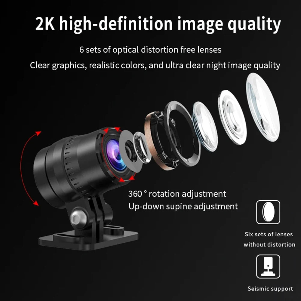 Capturez des vidéos d'une clarté exceptionnelle grâce à la résolution 2K à 30 FPS pour les lentilles avant et arrière. La lentille en verre à 6 couches offre un angle de vue large de 155°, parfait pour capturer tous les détails autour de votre moto. -